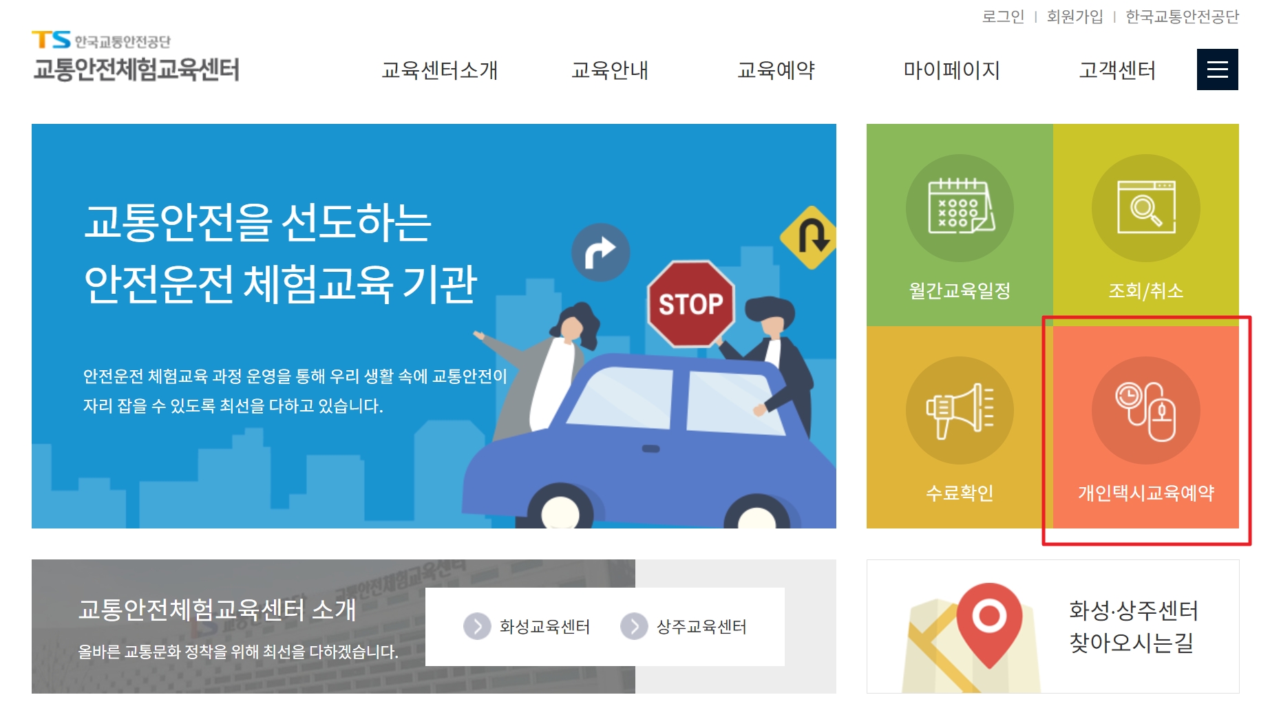 상주와 화성 2개의 지역 중에 선택하여 온라인을 통해 예약을 진행합니다. 한국교통공단에서 운영하는 교통안전체험 교육센터에서 예약을 진행할 수 있습니다.