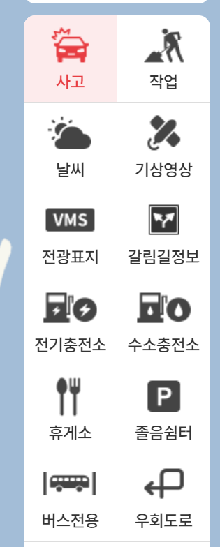 이렇게 CCTV 영상을 확인하는 것 외에도 도착 시간이나 소요시간 등을 조회해볼 수도 있고 우회도로를 알려주거나 돌발정보 등을 미리 확인해볼 수도 있습니다.