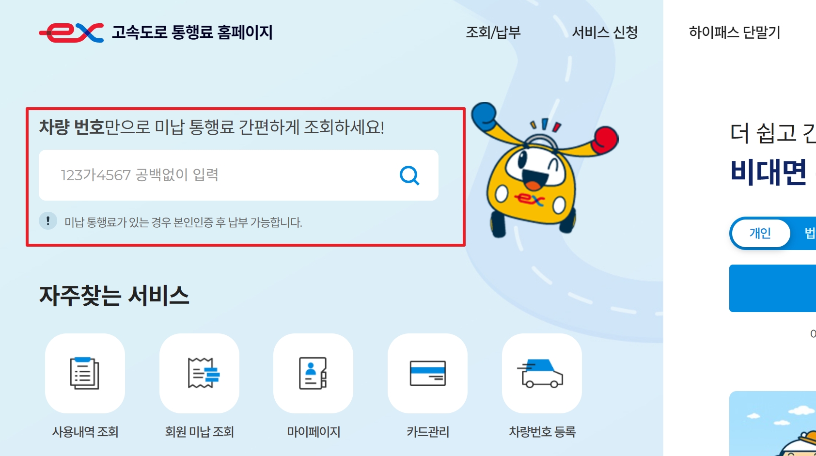 단순하게 한국도로공사에서 운영하는 고속도로 통행료 홈페이지로 들어가셔서 조회 후 미납된 내역이 있을 경우 납부하시면 됩니다.