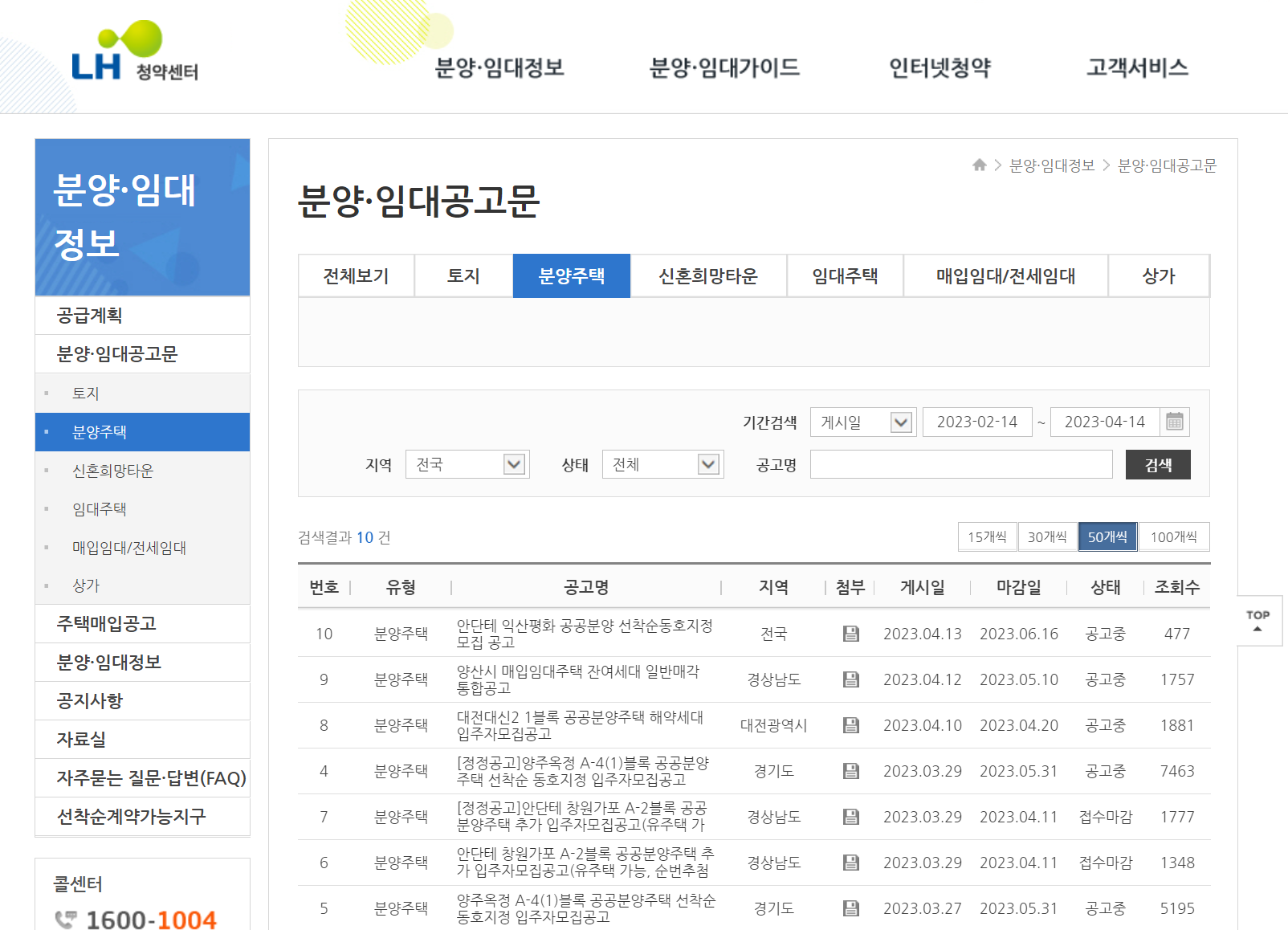 공공분양 모집공고 확인