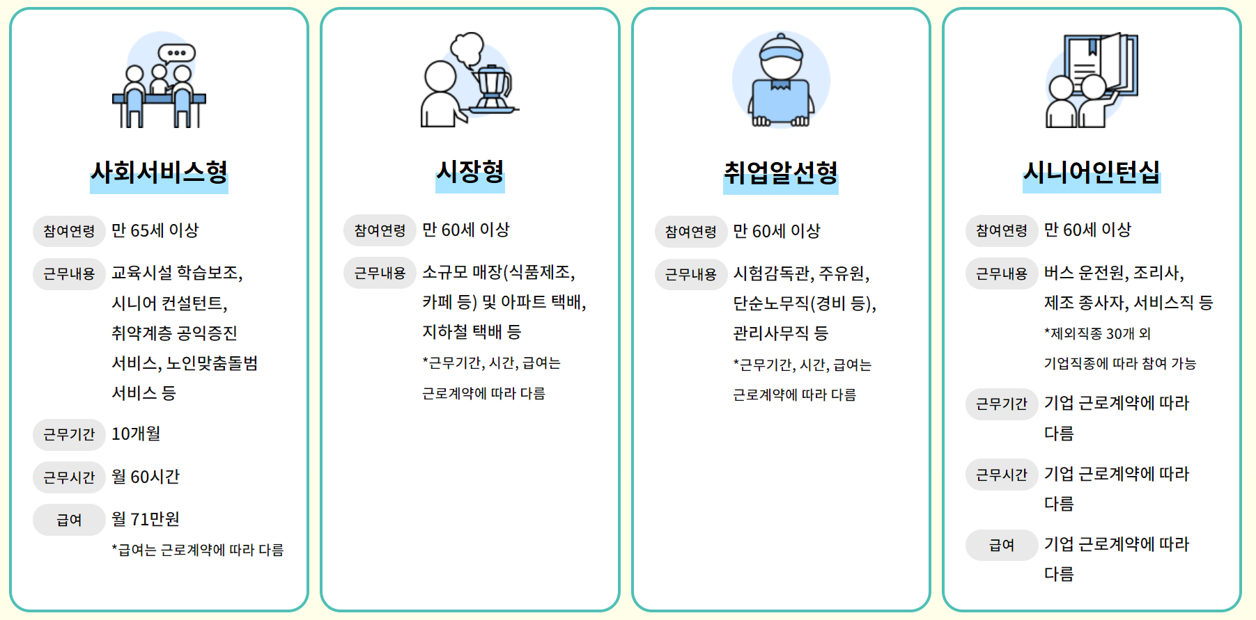 ✅ 사회서비스형, 시장형, 취업알선형, 시니어인턴십