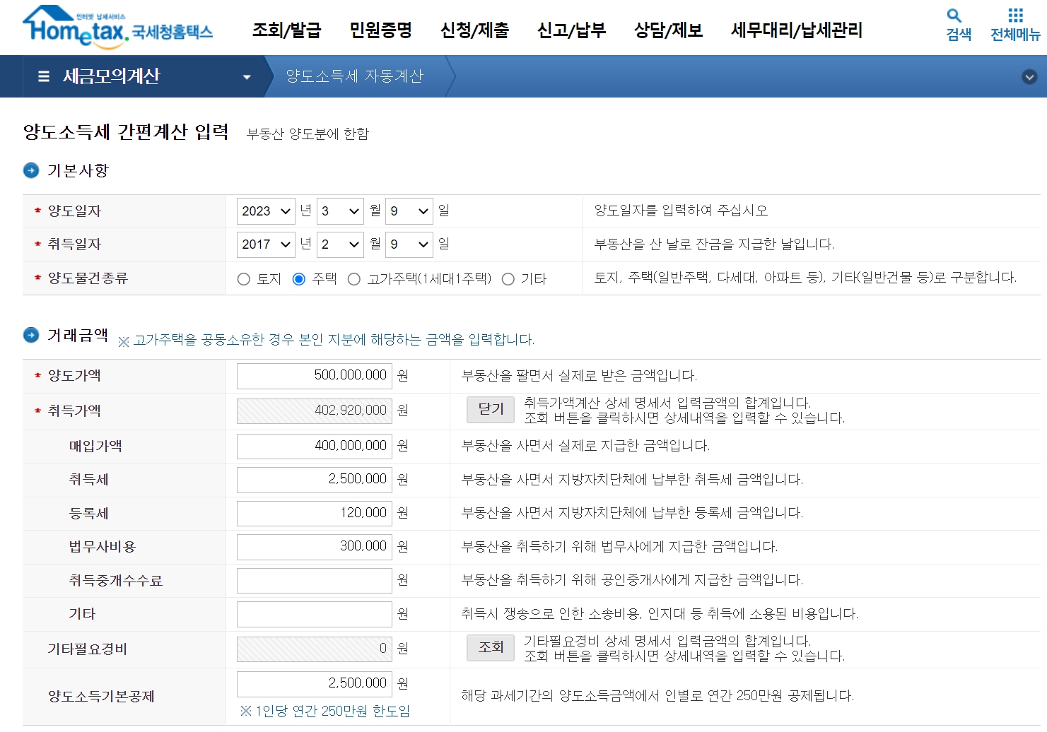 실제 양도소득세 세금을 납부하는 것과 다소 차이가 있을 수 있으니 이 점 참고하시어 이용해 보시기 바랍니다.