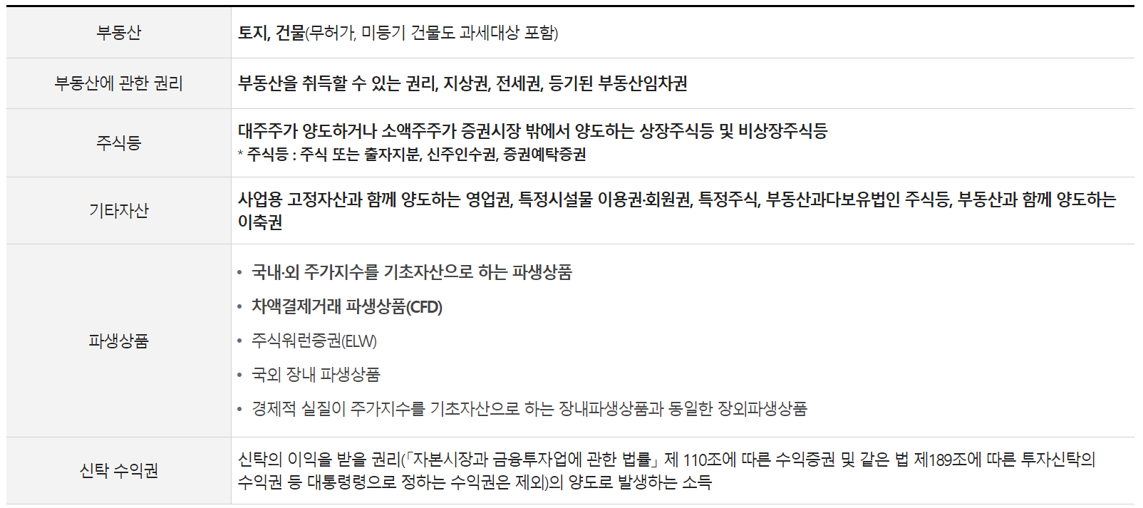 따라서 중요한 것이 과세대상인데요, 내가 갖고 있는 재산 등이 자산으로 해당되는지 아래 이미지를 통해 과세대상을 확인해 보시기 바랍니다.