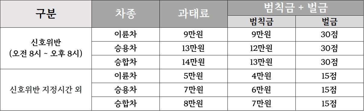 어린이보호구역 신호위반의 경우 시간대 별로 적용되며, 지자체 운영하는 방침에 따라 다소 차이가 있을 수 있습니다.