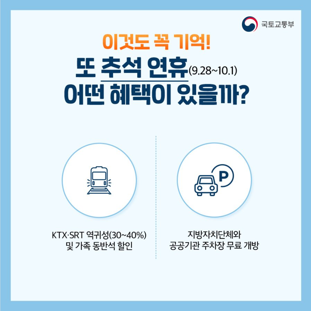 해당 방책 모두 추석 연휴기간인 9월 28일부터 10월 1일까지 적용되는 점 참고하시어 이용하시기 바랍니다.