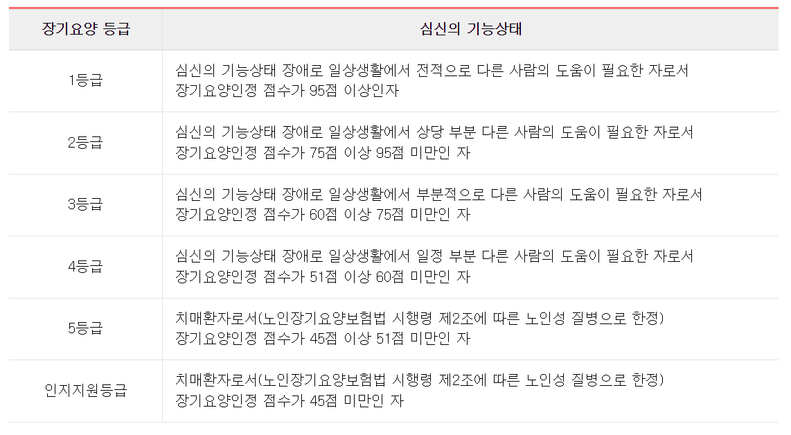 장기요양 등급 안내