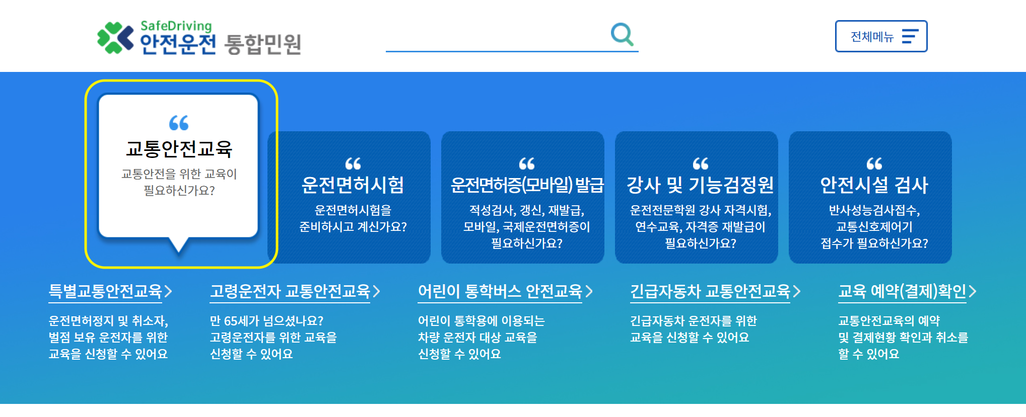 아래 페이지로 이동할 경우 가장 첫번째 '교통안전교육'을 클릭해 보시기 바랍니다.