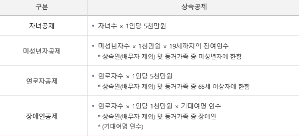 아래 표를 통해 자녀 상속 면제 한도액을 확인해보시기 바랍니다.
