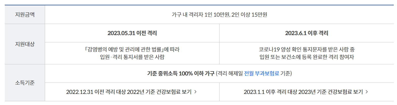 코로나 격리참여자 생활지원비 지원대상