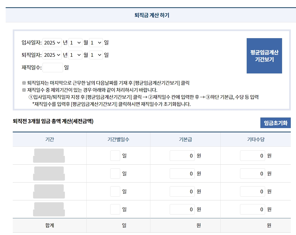 다소 복잡하지만 퇴직금 계산기를 통해 간편하게 계산할 수 있습니다.