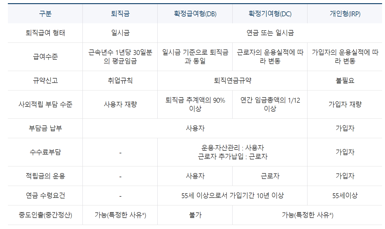 퇴직금과 퇴직연금 제도를 비교해놓은 표인데요, 아래 내용을 확인하시고 본인에게 맞는 퇴직금 활용제도를 이용해보실 수 있습니다.