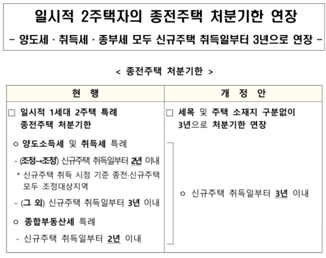 📌기존 주택을 취득 후 1년 지난 후에 신규 주택 취득시 / 📌최초 주택 취득 후 2년 이상 보유할 경우 / 📌신규 주택 취득 후 3년 내 기존 주택을 양도할 경우