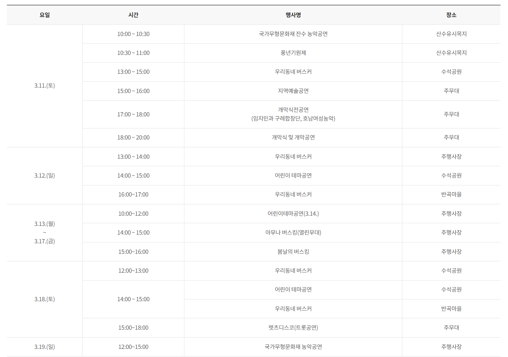 ✅일시 : 3월 11일부터 3월 19일까지