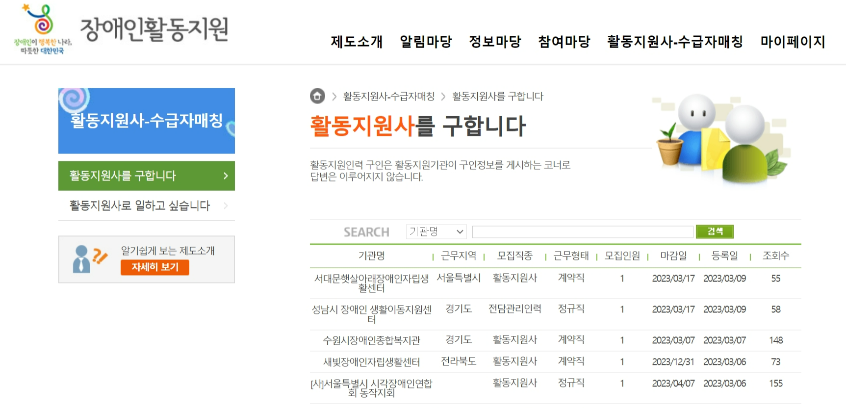 해당 사이트에서는 장애인 활동지원사 구인 구직 정보도 확인할 수 있습니다.