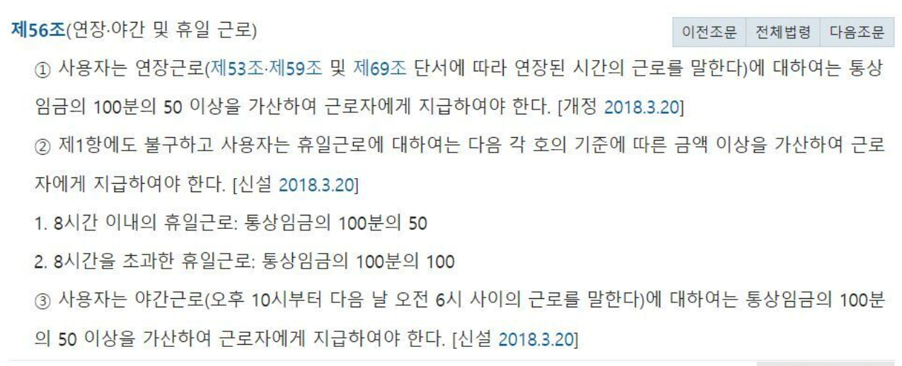 법정 근로시간을 초과해 근로할 경우 50% 이상 가산해 지급